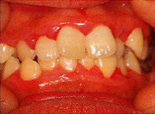 ■歯肉炎 歯の根元のあたりや、歯と歯の間の汚れ(プラーク)がたまり、歯肉が赤くなったり腫れぼったくなったりします。 また、歯肉から血が出たりします。 自覚的は症状はほとんどありません。 この段階ですと、ほとんどの場合、歯磨きだけでも治ります。 |